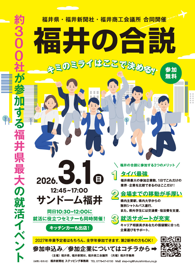 約300社が参加する福井県最大級の就活イベント「福井の合説」が下記日程にて開催されます。