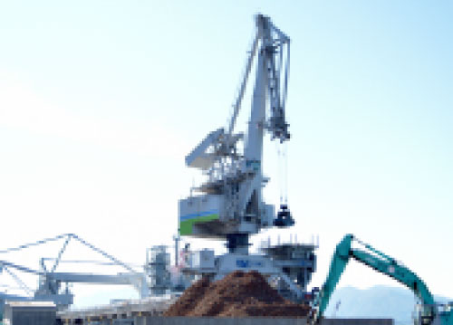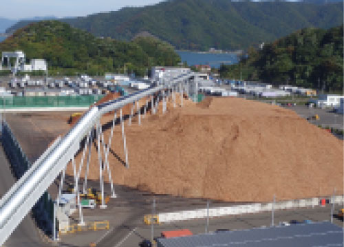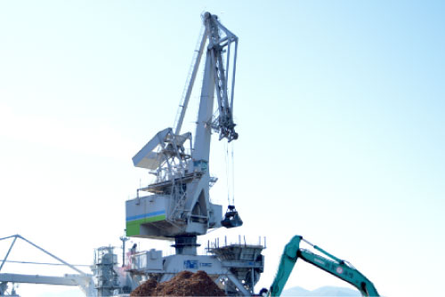 - 40,000t級のチップ専用船に対応し、海外から輸入されるウッドチップの揚げ荷役を行っております。荷揚げされたウッドチップはバイオマス発電所の燃料用として使用されます。