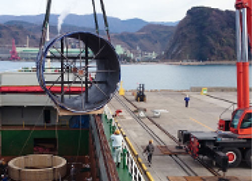 - プラント・発電所等で使用・撤去する重量物・長尺物の荷揚げまたは船積みを行います。