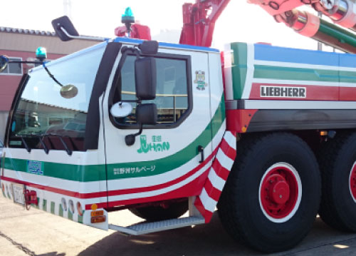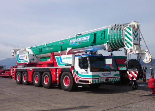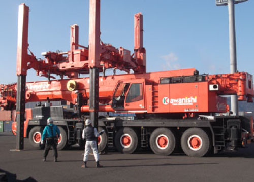 クレーンの無い船舶でも陸上から大型クレーンを手配し、作業することが可能です。