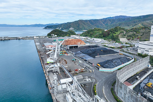 - 諸外国から輸入された石炭を荷揚げします。パナマックス級の大型船や近海輸送の中型船、国内からの内航小型船に対応し、荷揚げした石炭は近在の工場へボイラー燃料用として出荷されます。