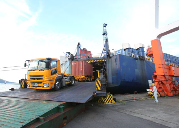 荷役効率および貨物輸送の安全性を最優先に考えた“RO-RO船”は、重量貨物および大型貨物や特殊車両、コンテナなど船内へ積込みを可能した本船になります。 当社は敦賀港におけるRO-RO船ターミナルオペレーションと荷役作業を行い、高品質なサービスでお客様から高い評価をいただいています。