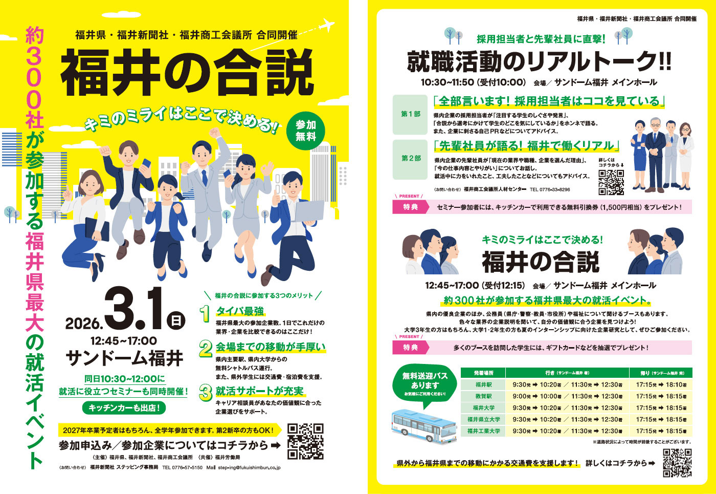 約300社が参加する福井県最大級の就活イベント「福井の合説」が下記日程にて開催されます。